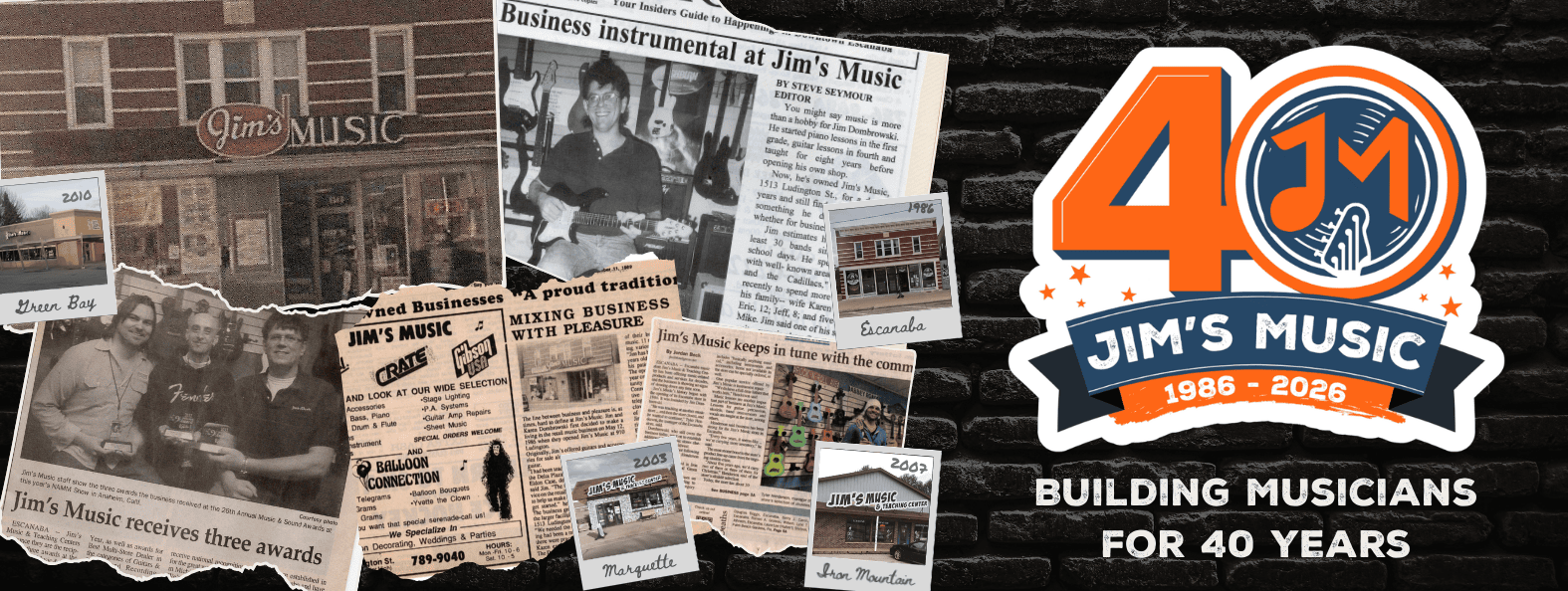 Jim's Music is your one stop shop for all your music related needs! With our four locations in NE Wisconsin and Upper Michigan we are passionate about bringing music to our community. Whether you are starting out and looking for an instrument and lessons or have been gigging your whole life and need your gear looked after by the best, we're here for you. Our team of highly trained and experienced staff are here to answer any questions, no matter how small, and help you find whatever you may need to get that perfect sound. Call, text, email, or just stop-in, we're here for you.
